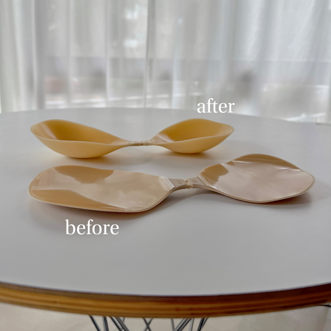 Covely Skinbra™ flatは、見た目は薄くフラットながら、フィルムを剥がすと立体へ変化する新感覚のストラップレスブラ。